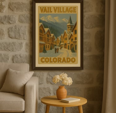 Celebrate Colorado's alpine charm with our new collection of vintage-style ski posters featuring Vail Village, Keystone, and Winter Park—now available as printable art on Etsy.