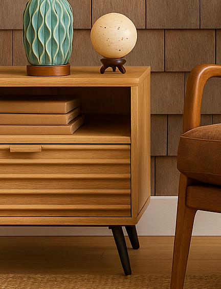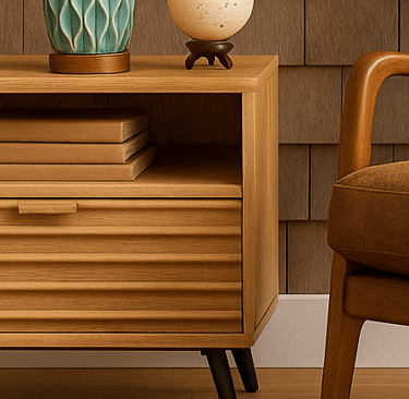 Beside the chair, the RedLemon 24" Nightstand brings function and design together seamlessly. Its fluted drawer fronts give a nod to mid-century modern styling, while the natural oak finish provides a soft, earthy tone that complements the chair perfectly. A built-in charger station keeps your phone and devices discreetly powered, making this side table as practical as it is beautiful.