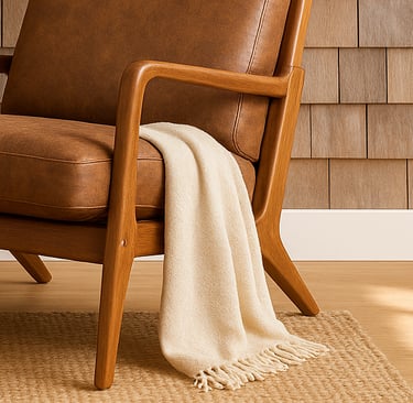Sometimes the most serene spaces are the smallest—just one cozy chair, a simple table, and a few carefully chosen objects that invite you to pause. If you're dreaming of a quiet reading corner or a warm welcome in your bedroom or office, this setup delivers a perfect blend of tactile richness and timeless design.